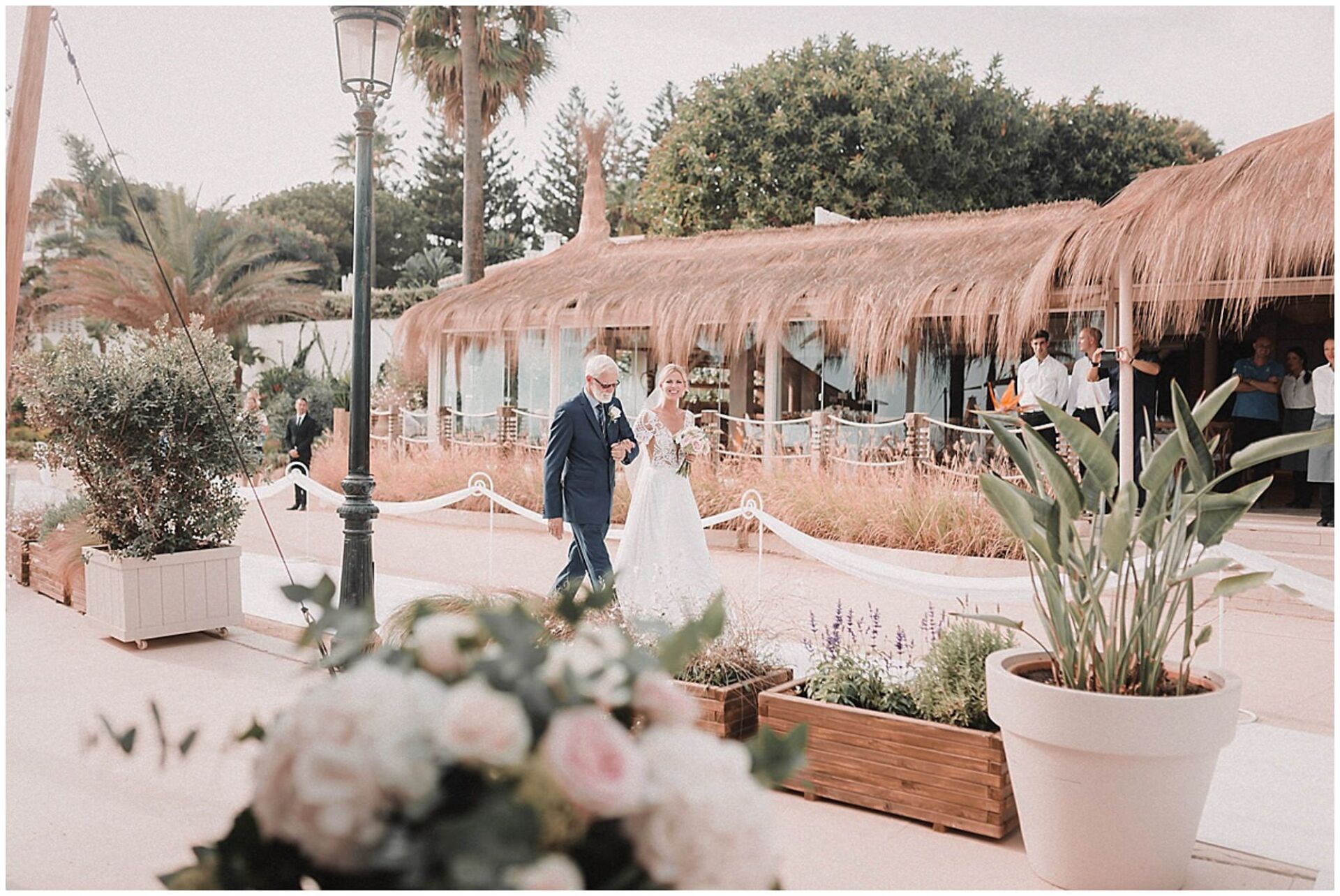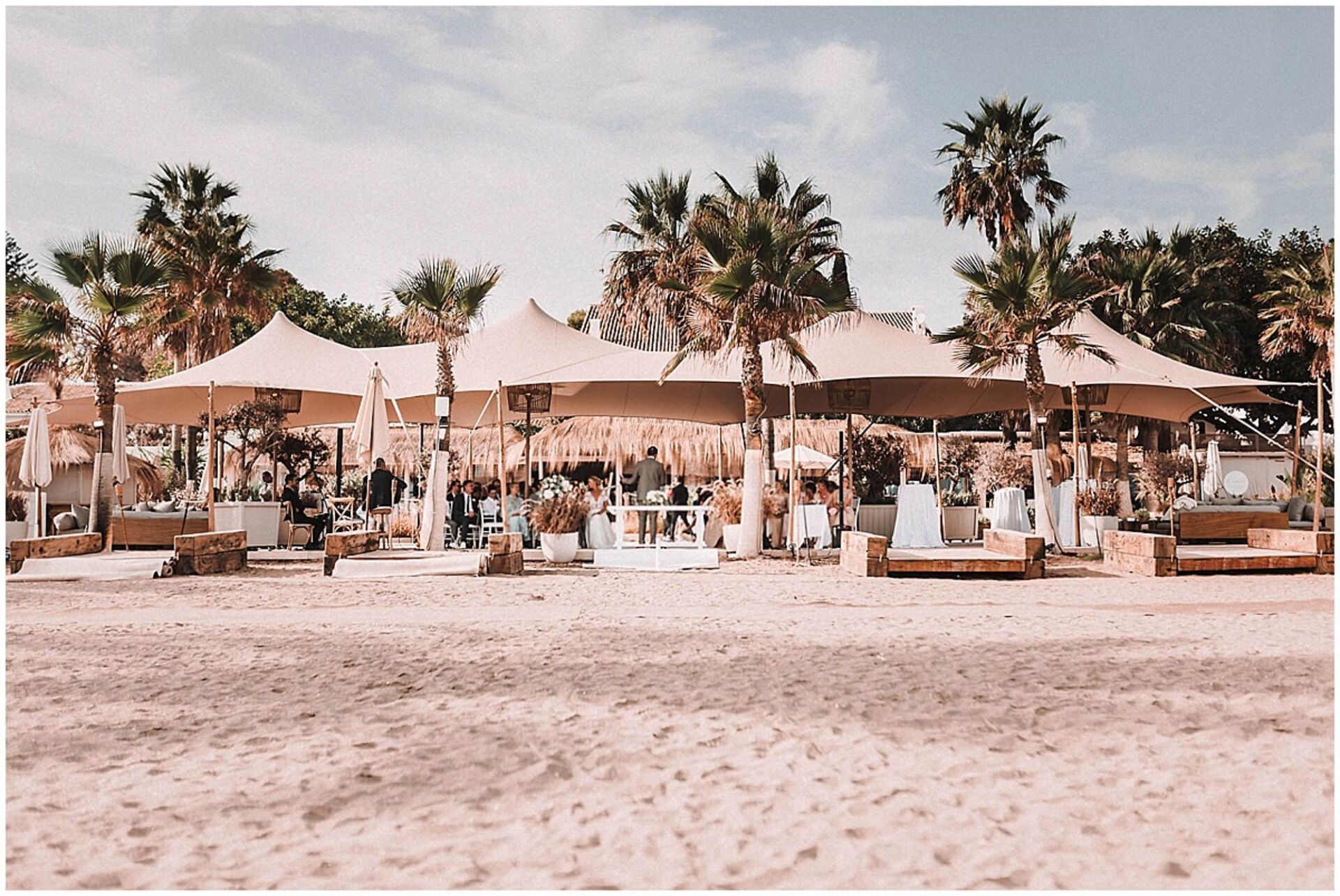 - The wedding and reception will be hosted at at a special venues: beach clubs, in a natural scenery with the sun on your face and sand in your toes, sipping cocktails with umbrellas or a more formal thing with shoes on in the typical Andalusian gardens of a cortijo and why not a palace for a more luxurious experience or a yacht at sea with just a few loved ones. But in whichever option you choose, your wedding pictures will have the amazing light of the Mediterranean.