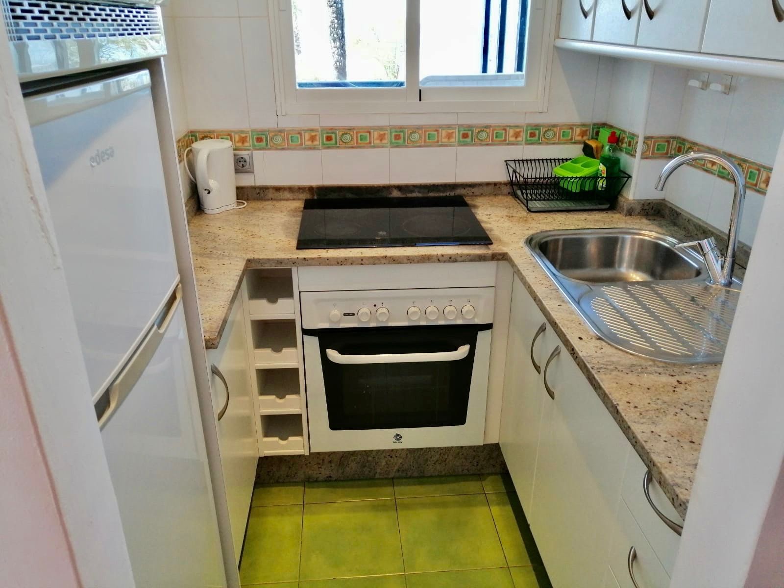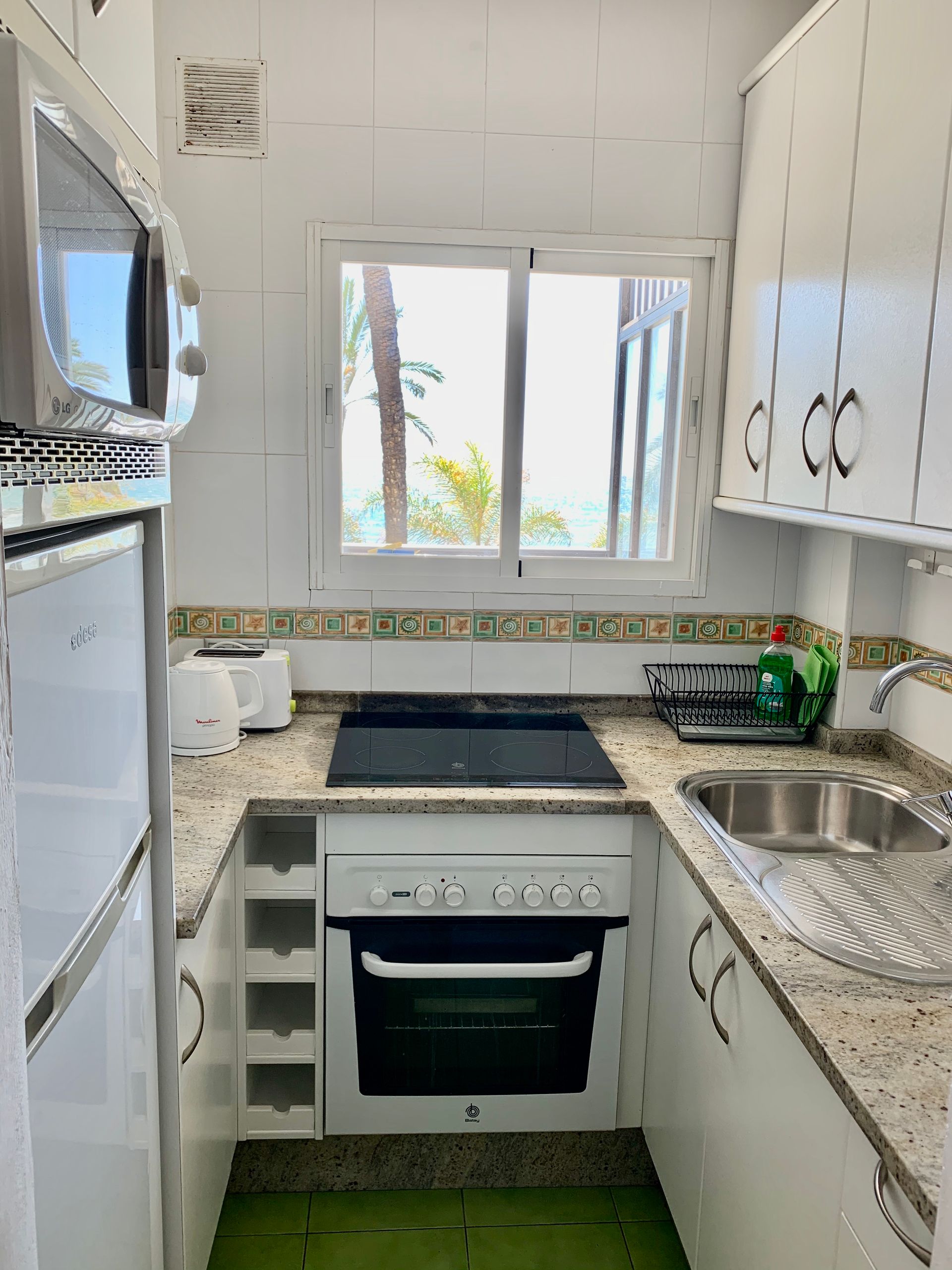 Modern, light and airy, recently refurbished in light colors that will make your stay calm and relaxing, open plan well stocked kitchen with all appliances, should you fancy to cook and bathroom with large walk in shower.