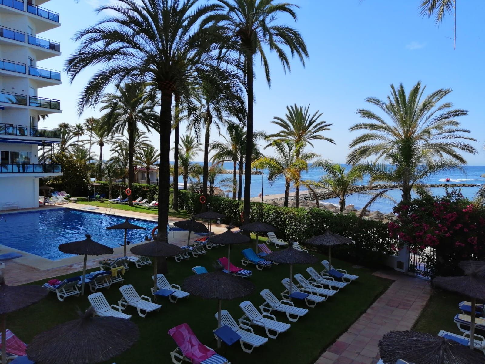 Skol Apartments Marbella are self catering apartments set beachfront on central Marbella boardwalk with all services and amenities nearby. We offer a wide range of studios, 1-2-3 bedrooms apartments. They're all fully furnished with equipped kitchen as well as air con, heating, wifi, balcony with sea views, welcome pack and 24/7 reception and attention.