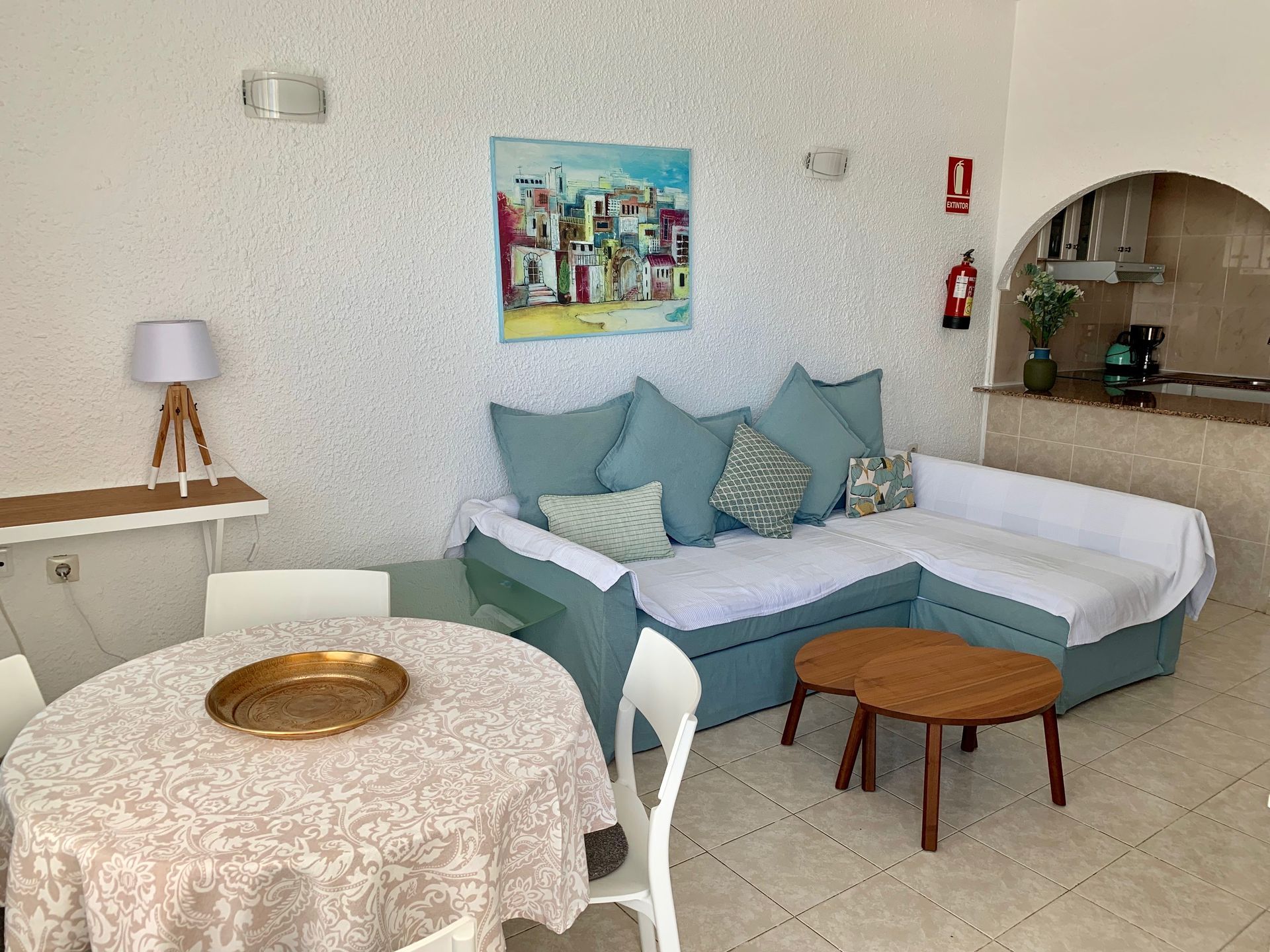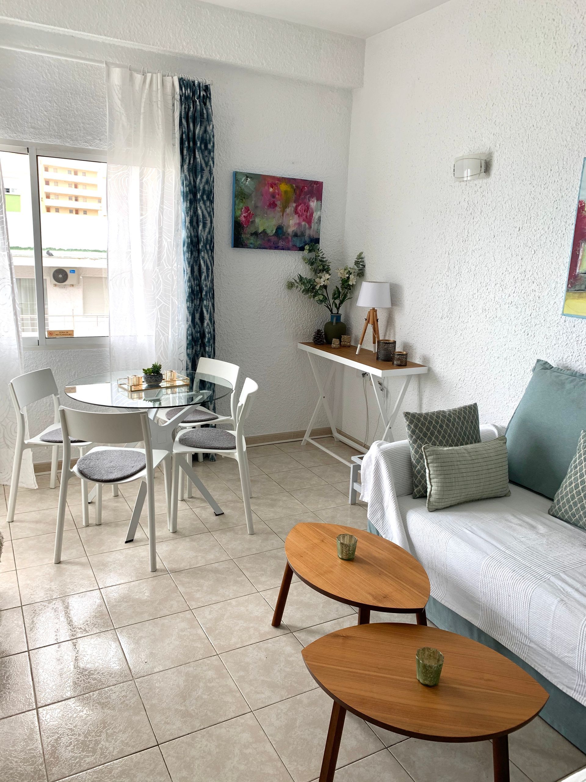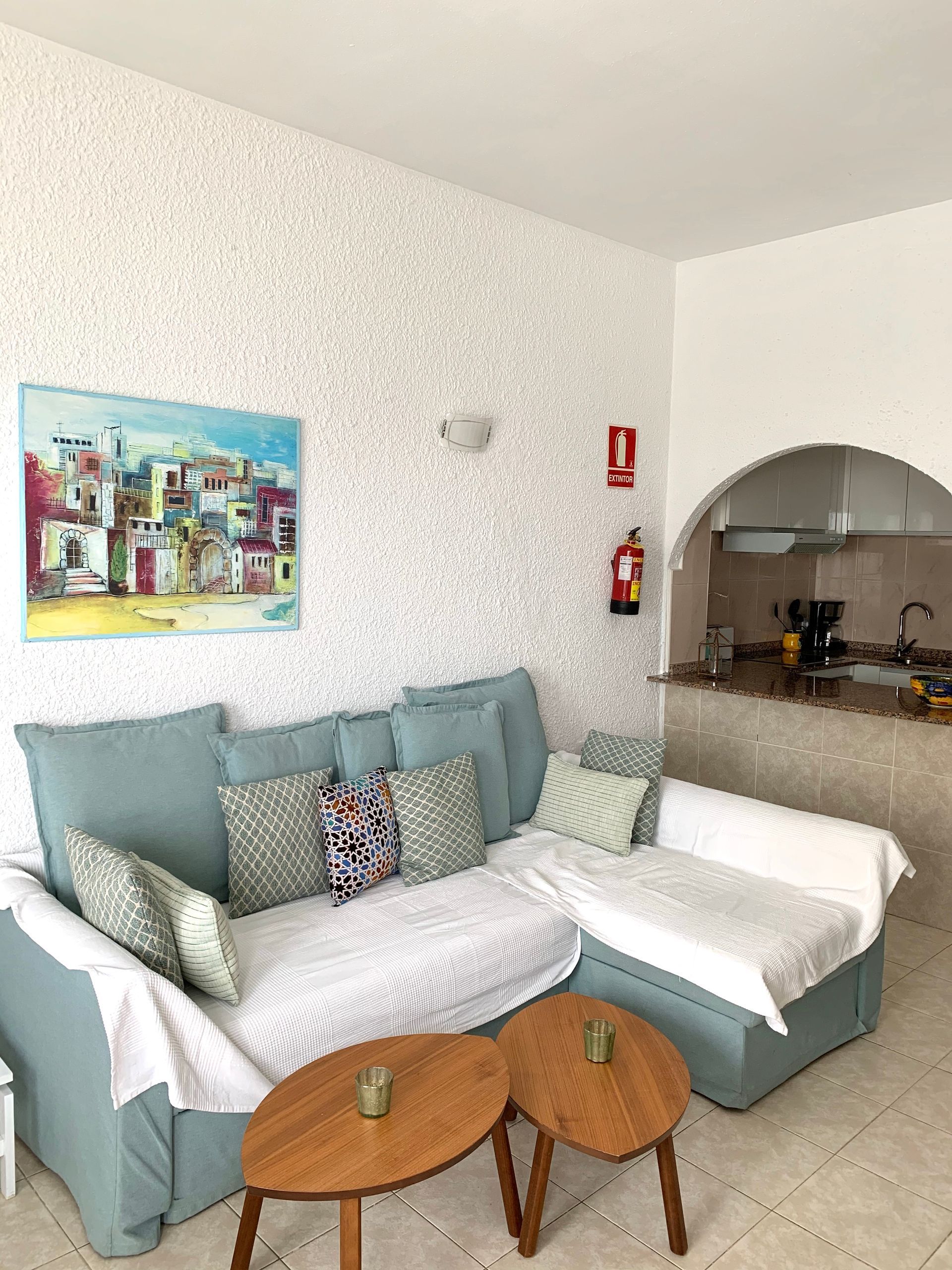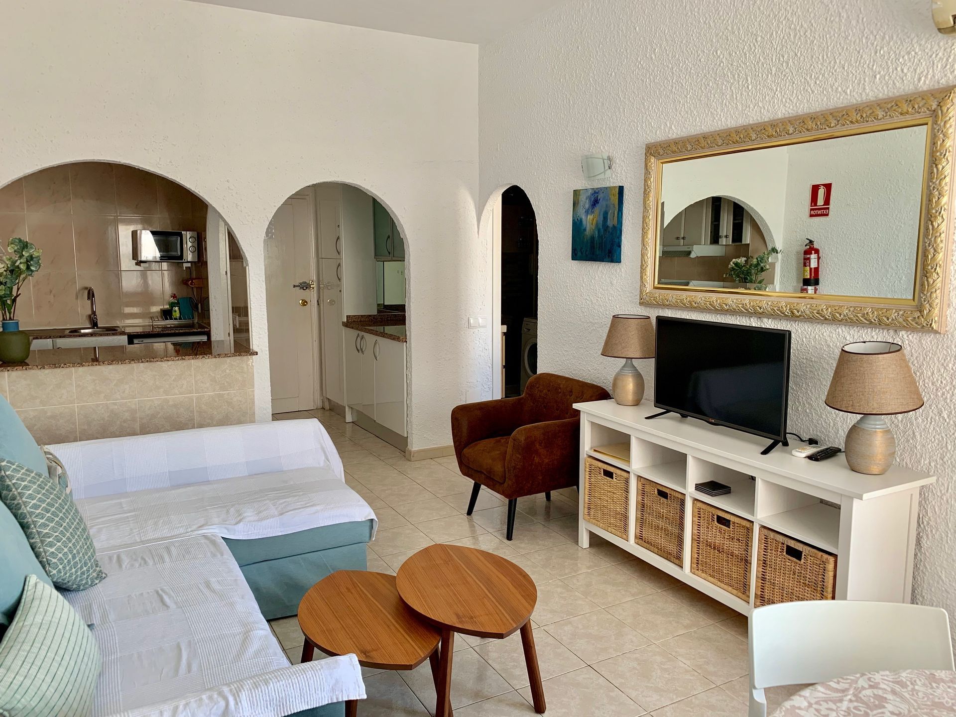 Modern, light and airy, recently refurbished in light colors that will make your stay calm and relaxing, open plan well stocked kitchen with all appliances, should you fancy to cook and bathroom with large walk in shower.