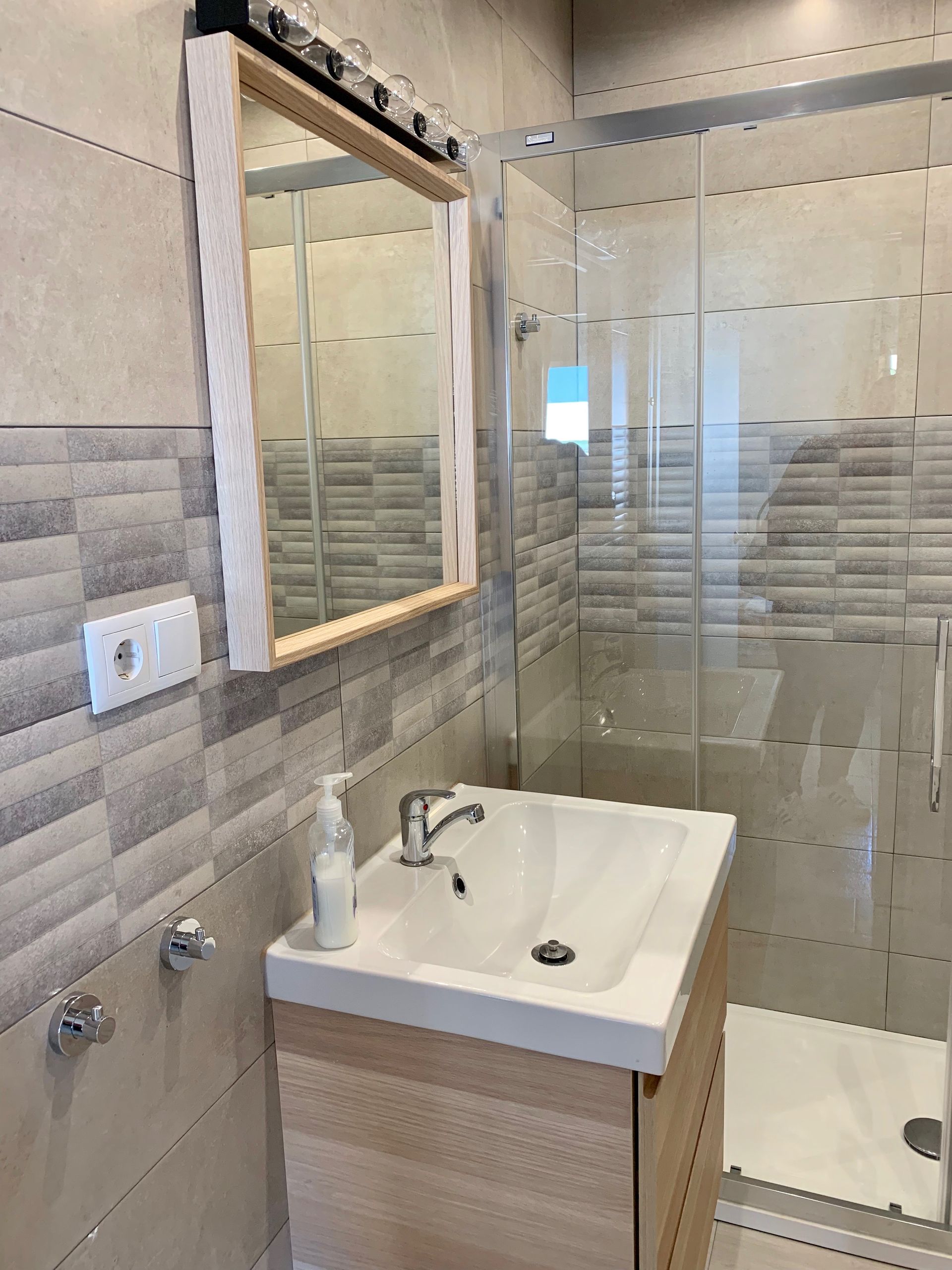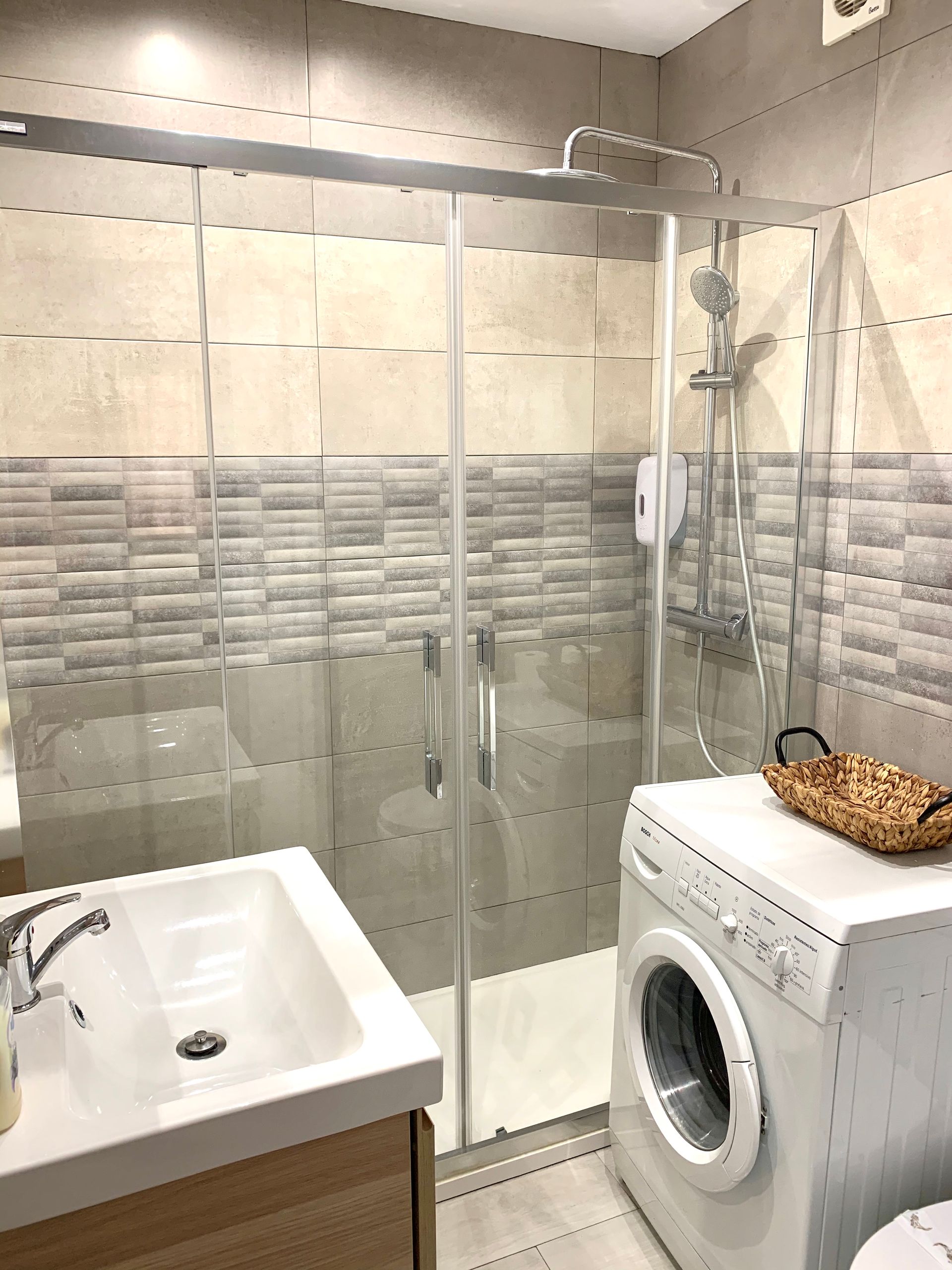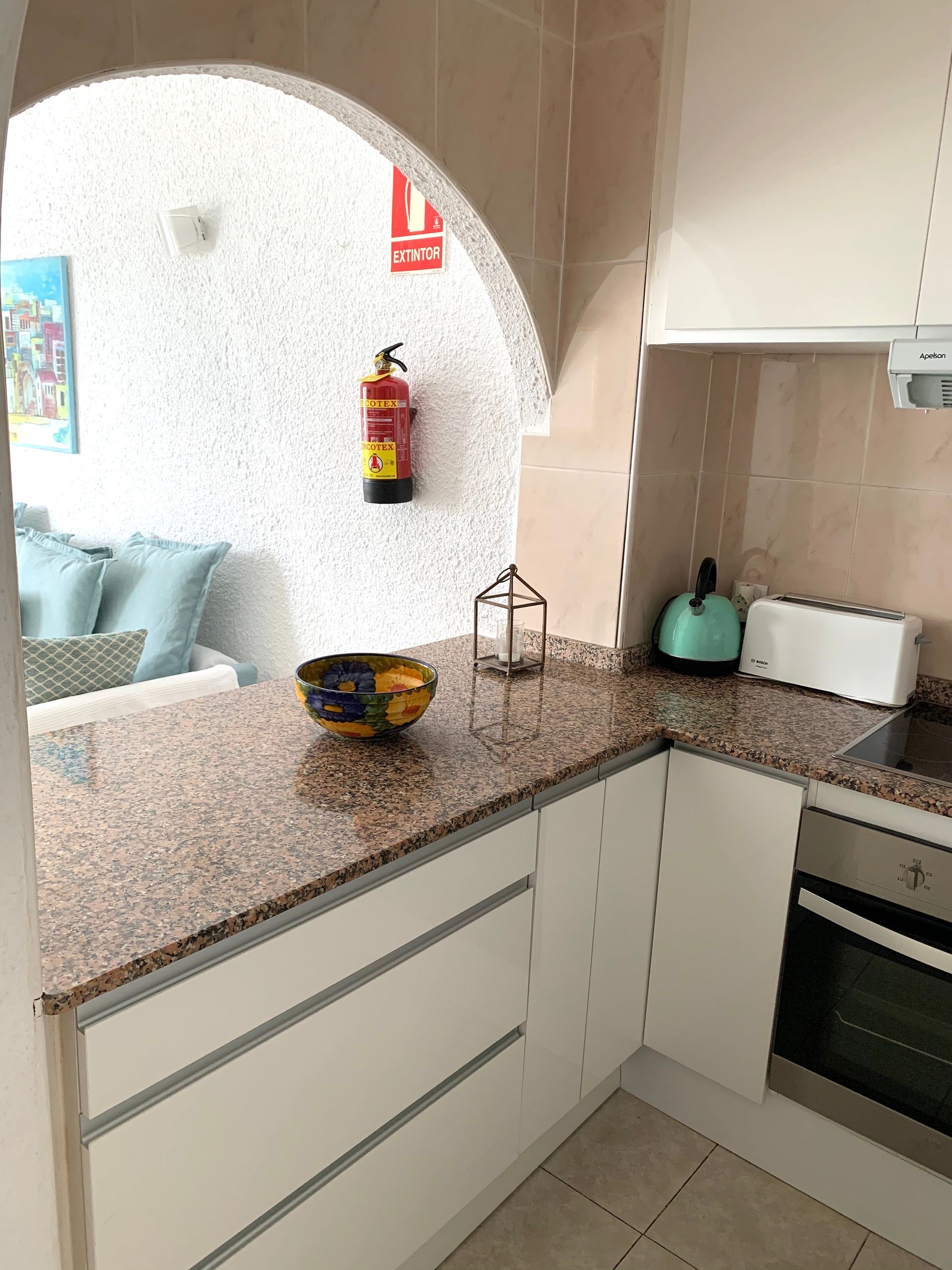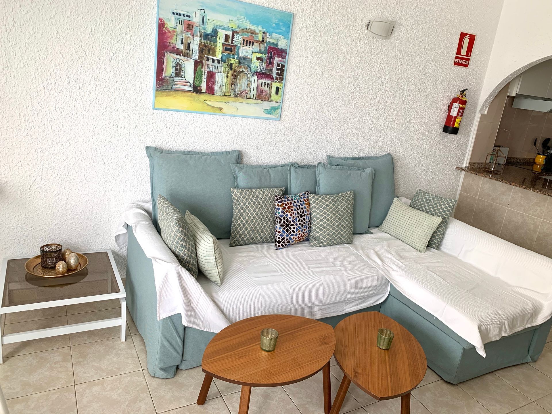 Modern, light and airy, recently refurbished in light colors that will make your stay calm and relaxing, open plan well stocked kitchen with all appliances, should you fancy to cook and bathroom with large walk in shower.