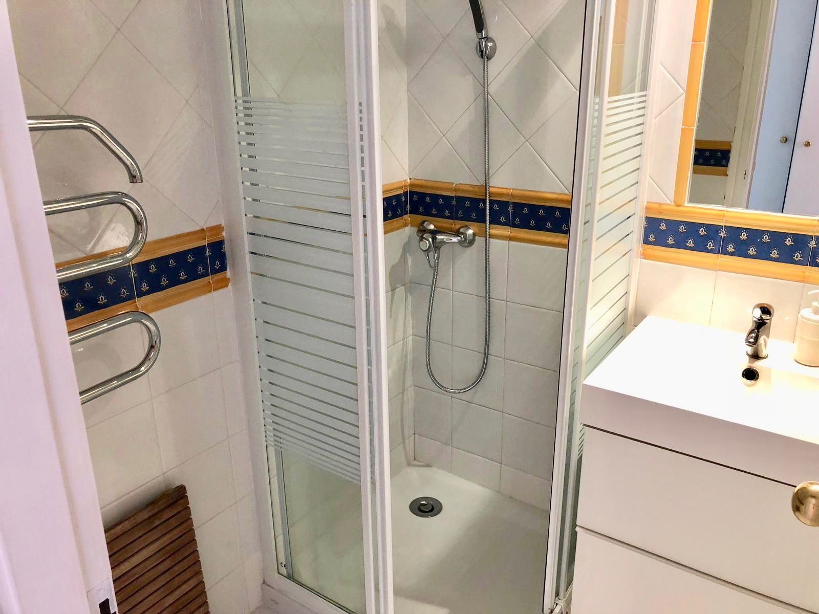 Modern, light and airy, recently refurbished in light colors that will make your stay calm and relaxing, open plan well stocked kitchen with all appliances, should you fancy to cook and bathroom with large walk in shower.