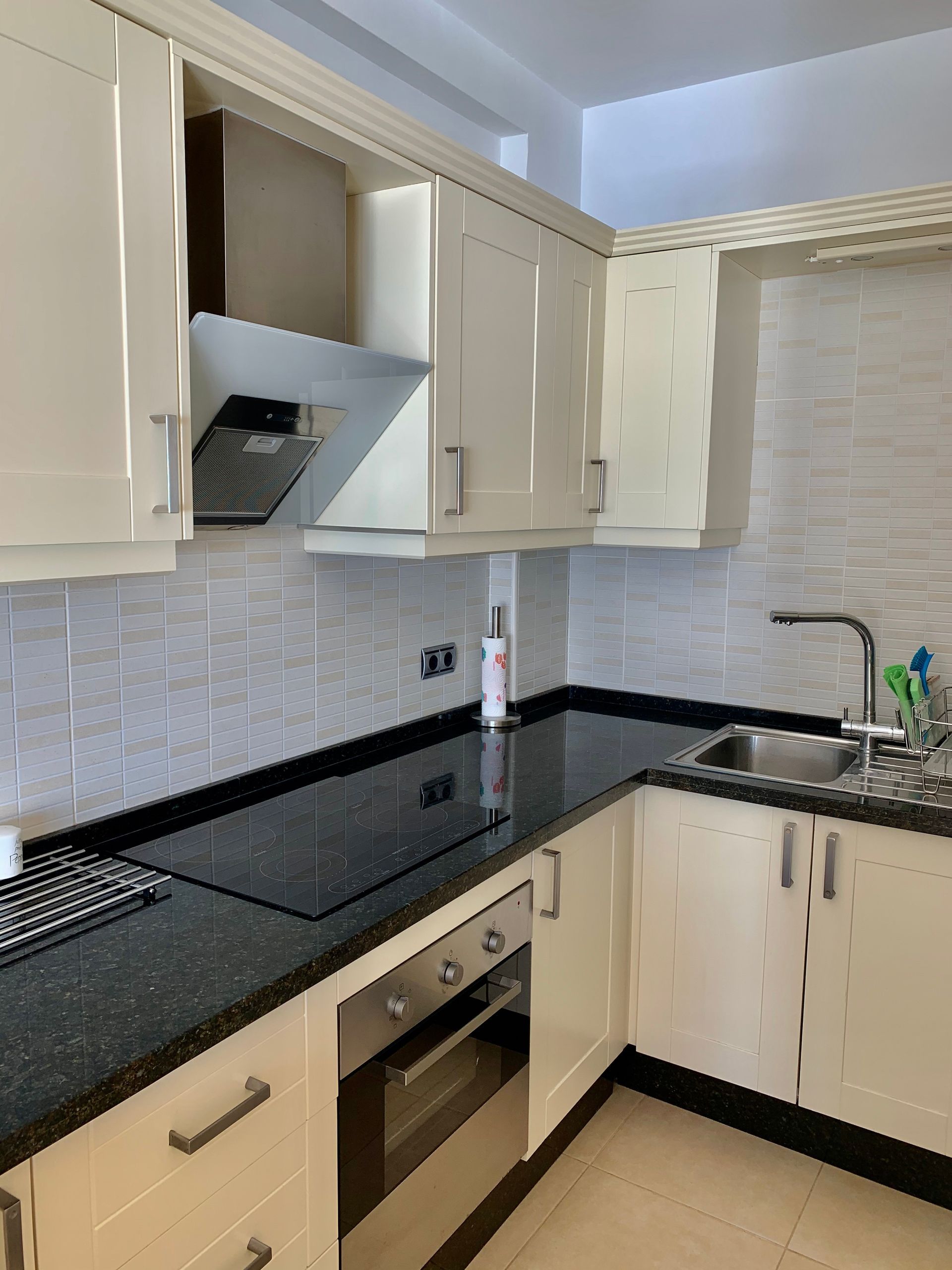 Modern, light and airy, recently refurbished in light colors that will make your stay calm and relaxing, open plan well stocked kitchen with all appliances, should you fancy to cook and bathroom with large walk in shower.